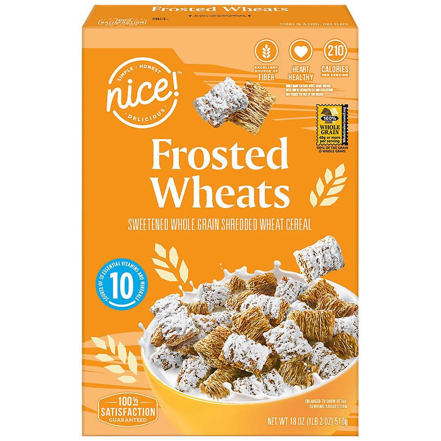 Greet the day with Nice Frosted Wheats, a wholesome, lowfat breakfast cereal thats built for big days. Includes one, 18ounce box of Frosted Wheats breakfast cereal. These bitesized biscuits pack a hea…
