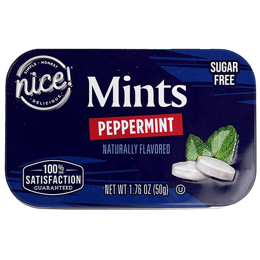 Nice! Mints are an intense sugar free peppermint made with natural peppermint oil and no artificial colors or flavors. Available in convenient and fully recyclable 50 g tins. Made in Canada
