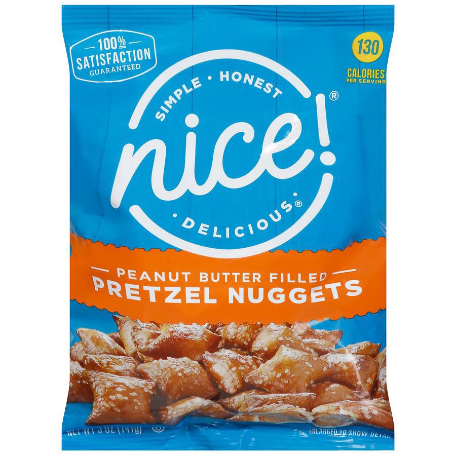 slide 1 of 5, Nice! Peanut Butter Filled Pretzel Nuggets, 5 oz