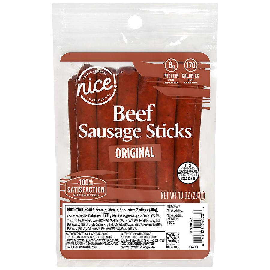 Premium Original Beef Sausage Snack Sticks. 8g of Protein per serving, Gluten Free, Hardwood Smoked. Made in USA