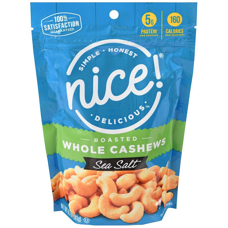 Satisfy your snack craving anytime, anywhere with heart healthy Nice Roasted Salted Whole Cashews. Supports bone health High in fiber Good source of plant protein Certified Kosher Made in VietnamCompa…