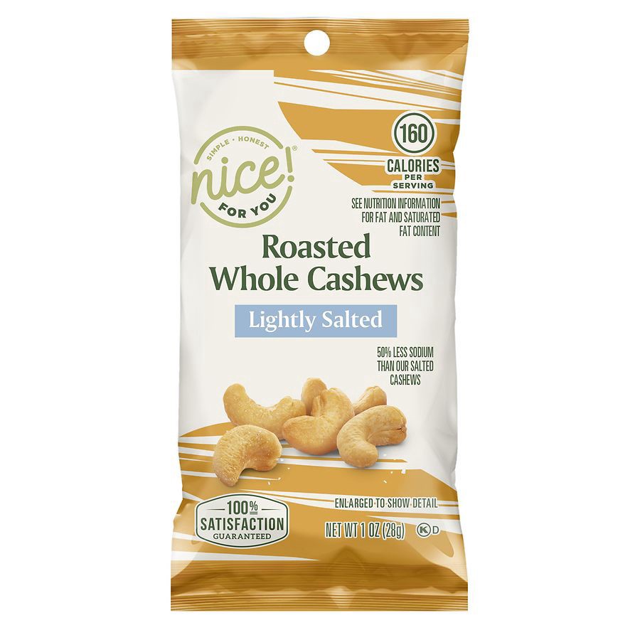 slide 1 of 5, Nice! Roasted Whole Cashews Lightly Salted, 1 oz