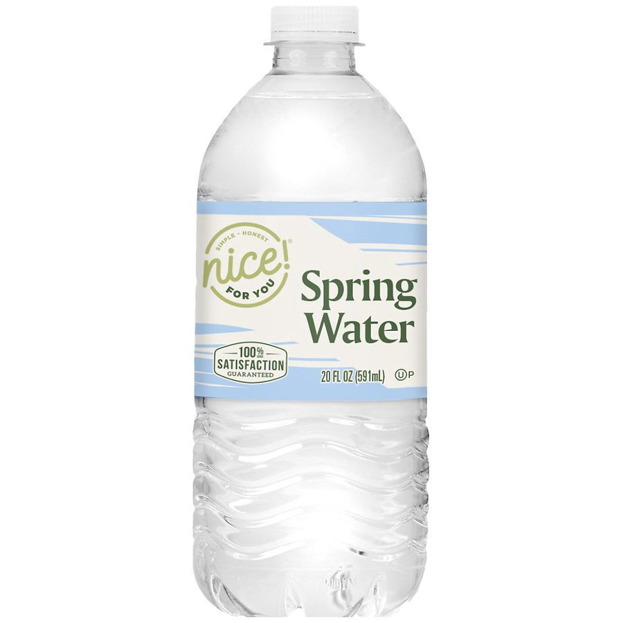 Nice Spring Water 20 oz. Stay hydrated with refreshing Nice Spring Water. Clean, crisp taste Made in USA
