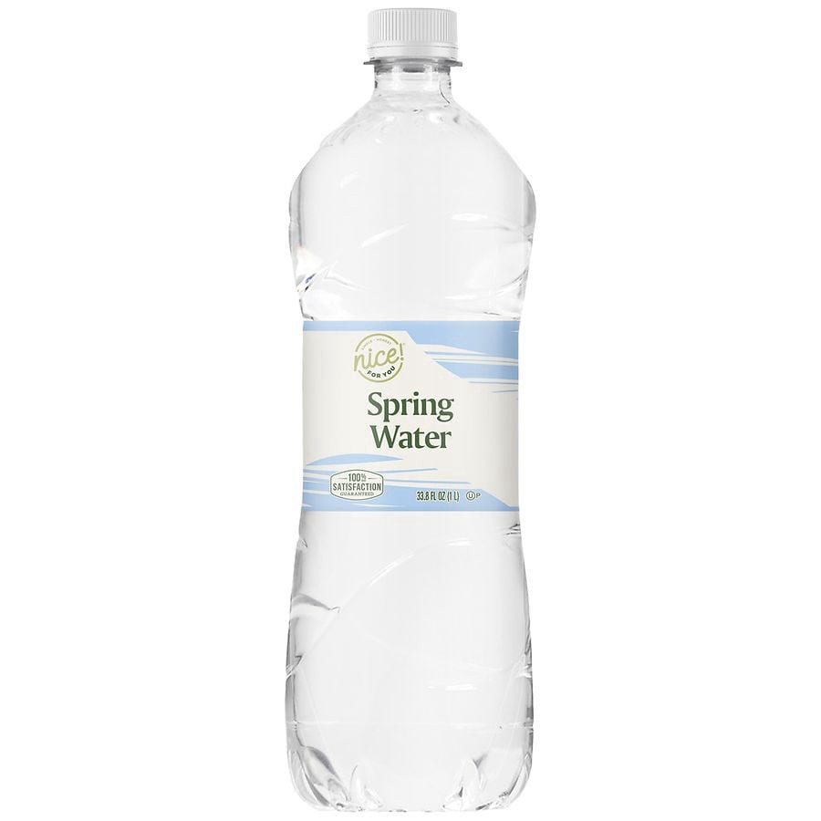Nice Spring Water 1 L. Have enough hydration for any occasion with Nice Spring Water in a 1 L. bottle. Refreshing, clear spring water Made in USACompare the regular retail price of Walgreens brand pr…
