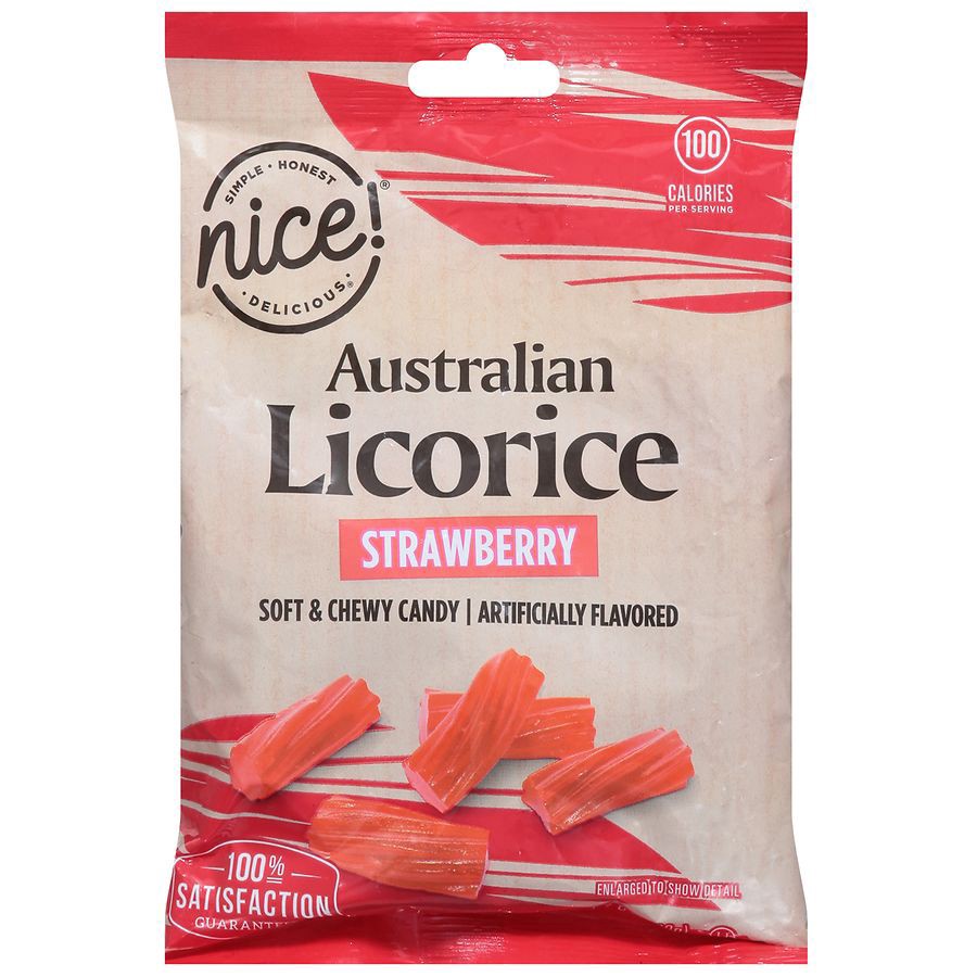 Candy from down under, Nice artificially flavored Strawberry Licorice is a soft, chew, satisfying treat. Made in USA