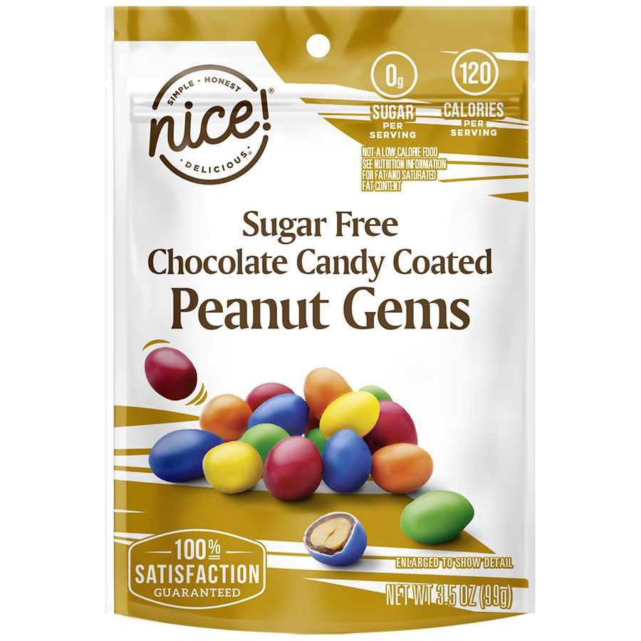 slide 2 of 5, Nice! Sugar Free Chocolate Candy Coated Peanut Gems, 3.5 oz
