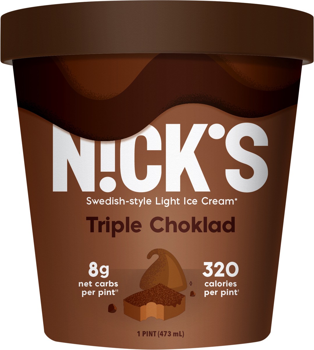 Swedish-style light ice cream. Certified Gluten-free. gfco.org. Keto - friendly. Swedish-style light ice cream (Contains 59 fewer calories and calories 59% less fat than regular ice cream) (Nick's Tri…