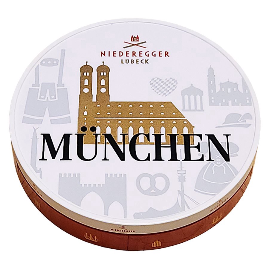 A great souvenir! The classic Niederegger marzipan cake, encased in crisp dark chocolate, packaged in an elegant gift box featuring München landmarks and typical city traditions in a modern design. Fo…