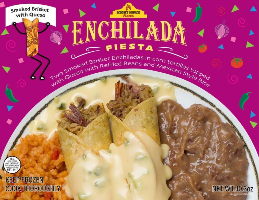 BRISKET ENCHILADAS WITH QUESO (QUESO [WATER, AMERICAN CHEESE (AMERICAN CHEESE (CULTURED PASTEURIZED MILK AND SKIM MILK, CREAM, SALT, CONTAINS LESS THAN 2% OF SODIUM PHOSPHATE, ANNATTO EXTRACT AND APO-…