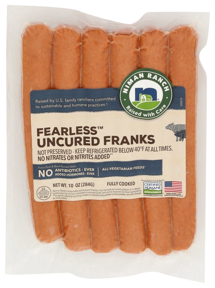 slide 1 of 1, Niman Ranch Pork And Beef Uncured Franks, 10 oz