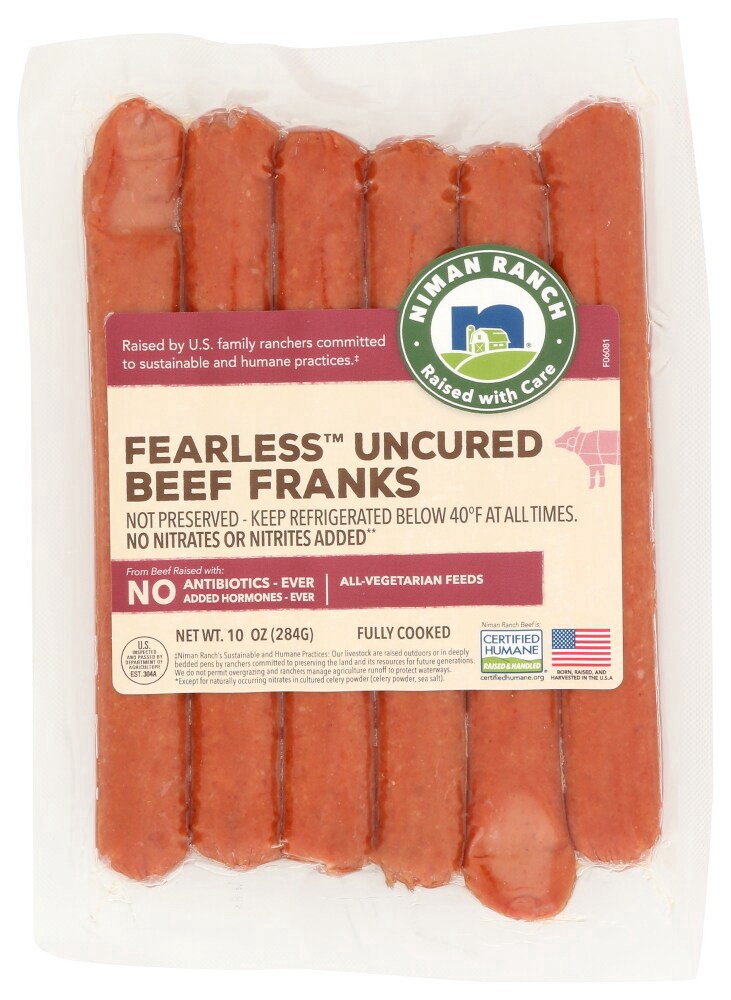 slide 1 of 1, Niman Ranch Uncured Beef Fearless Franks,