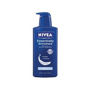 Very dry, rough skin. Hydra IQ: Non-stop 24hrs+. Fortifies. Enriches. Almond oil, sea minerals. Rich. Nivea Essentially Enriched Body Lotion is a rich nourishing formula that dramatically reduces dryn…