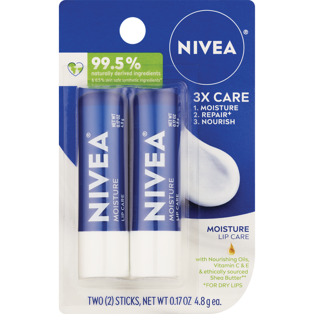 slide 3 of 11, Nivea Lip Care Moisture (Stick) 2-Pack 0.17Oz, 0.17 oz