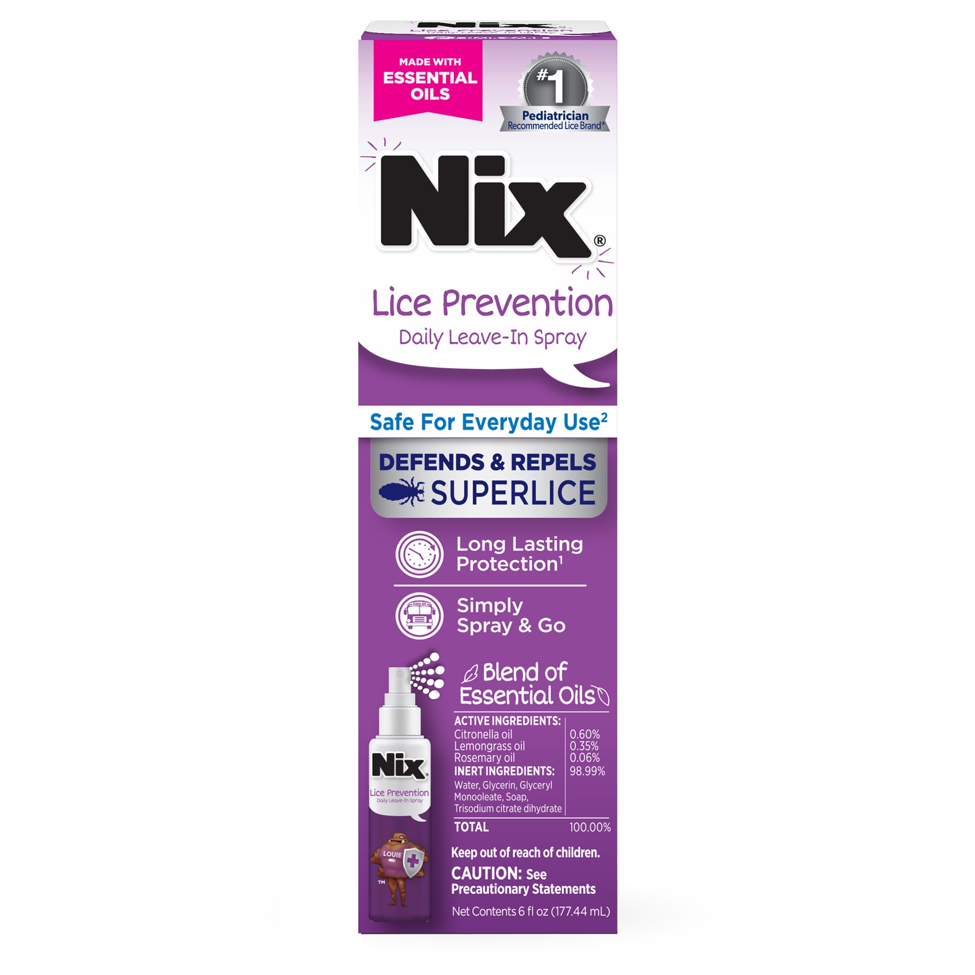 From the #1 pediatrician-recommended lice removal brand,* introducing Nix Lice Prevention Daily Leave-In Spray. Nix Lice prevention spray is a daily, leave-in spray to defend and repel lice and superl…