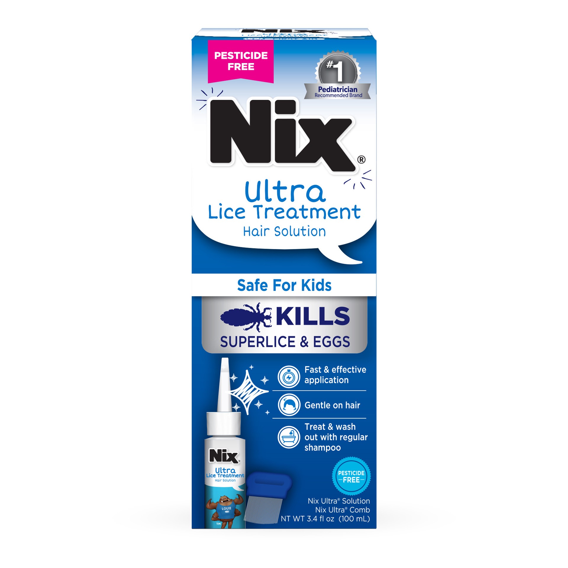 From the number one pediatrician-recommended lice removal brand.* Nix Ultra Lice Treatment Hair Solution kills head lice and eggs (nits), including hard-to-kill superlice. Superlice are the dominant s…