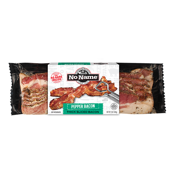 slide 1 of 1, No Name Thick Sliced Pepper Bacon, 12 oz