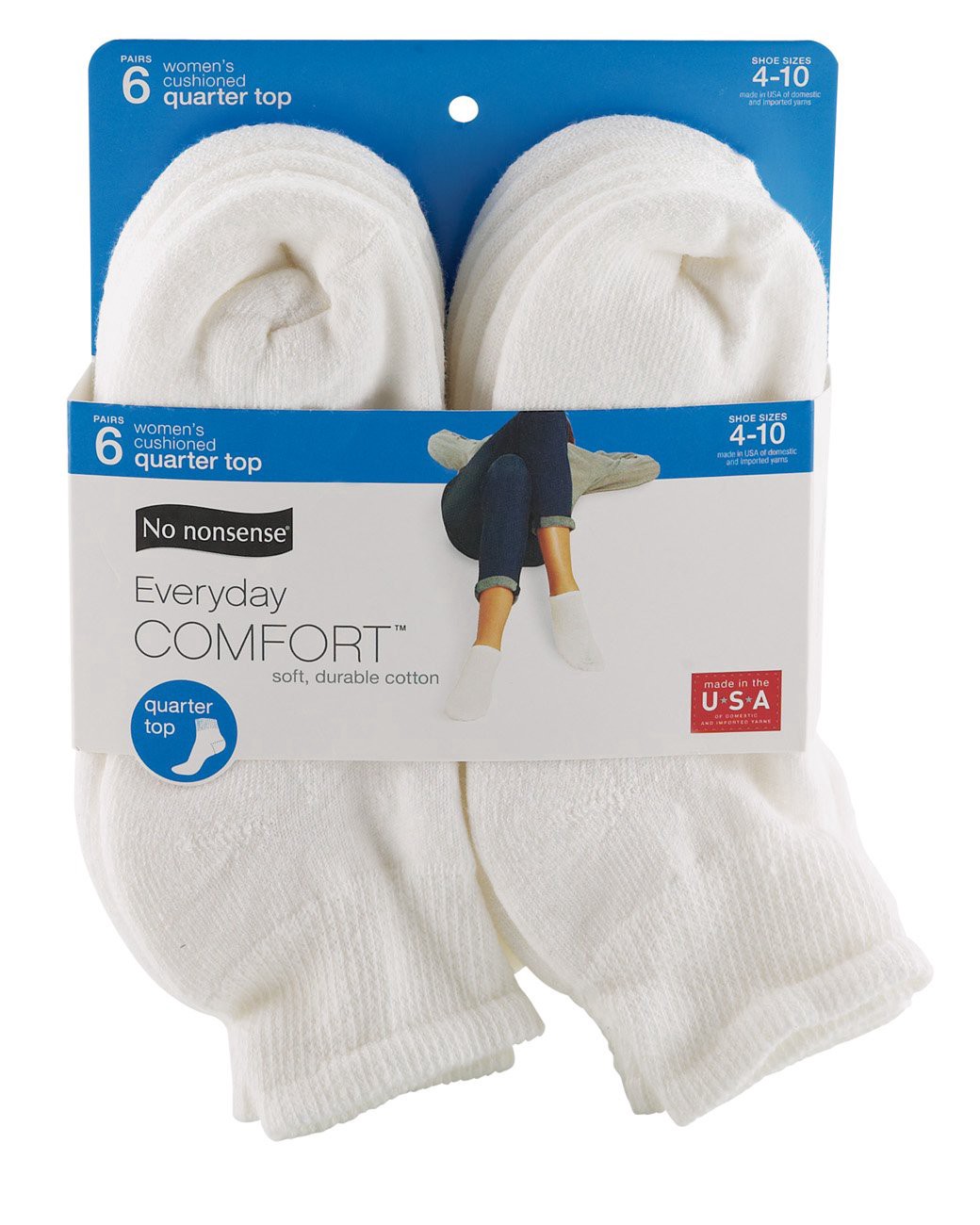 slide 1 of 1, No Nonsense Everyday Comfort Quarter Top Women's Size 4-10, White, 6 ct