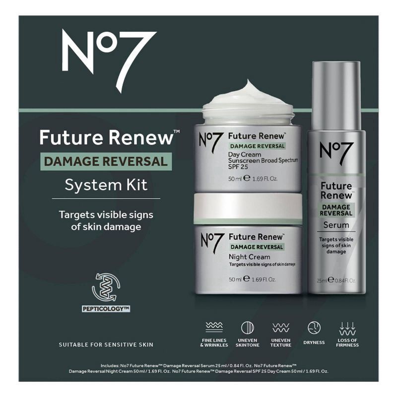Discover a world first peptide technology in No7's Future Renew Damage Reversal Skincare.This skincare system features No7's Future Renew Damage Reversal Serum, Future Renew Damage Reversal SPF 25 Day…