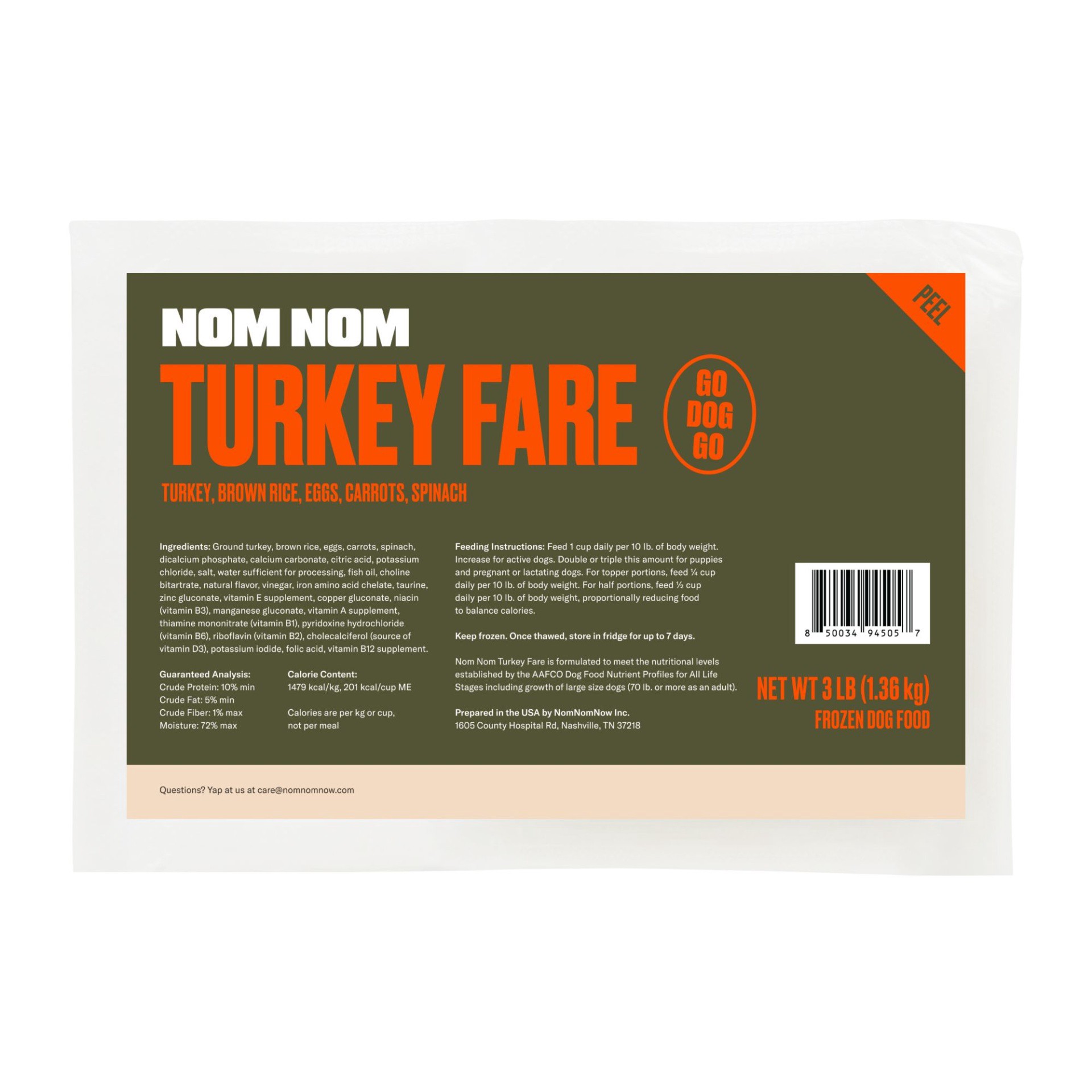 slide 1 of 1, NOM NOM All Life Stage Frozen Dog Food - Turkey, 3 lb
