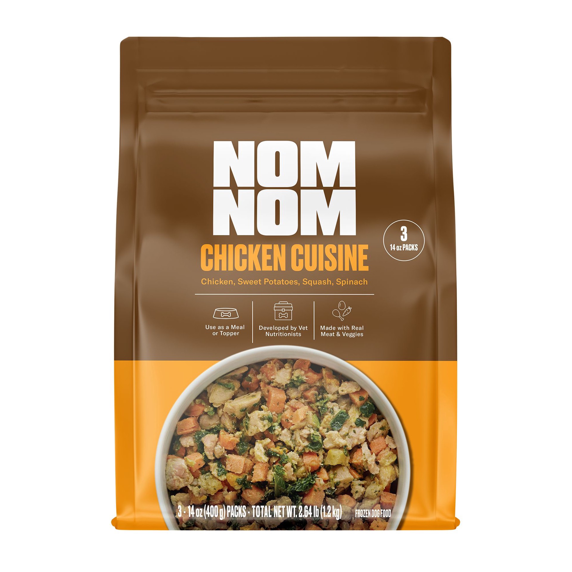 slide 1 of 1, NOM NOM All Life Stages Frozen Dog Food - Chicken, 2.64 lb