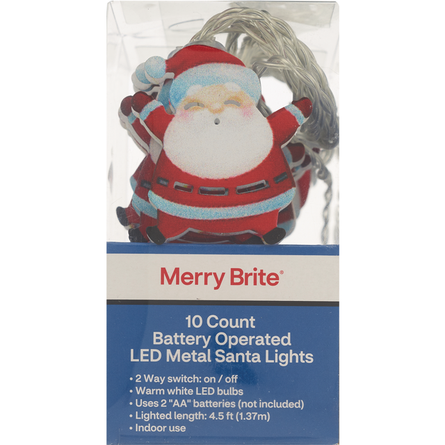 slide 1 of 1, NON BRAND 10Ct B/O Led Metal Ls 4Asst, Santa, 1 ct
