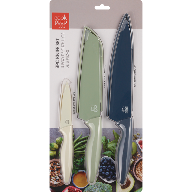 3.5" paring knife with sheath, blade thickness 1.2mm 7" Santuko knife with sheath, blade thickness 1.5mm