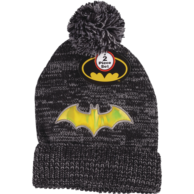 Children's winter hat and glove combo set. Stay fashionable and warm this winter season. Officially Licensed product BATMAN HAT & GLOVE SET WITH GOLD BAT PATCH ON FRONT HAT GREAT FOR GIFT GIVING