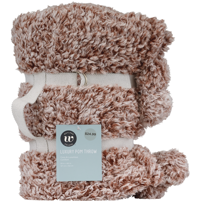slide 1 of 1, Bck Prntd Sherpa Throw With Pom, 1 ct