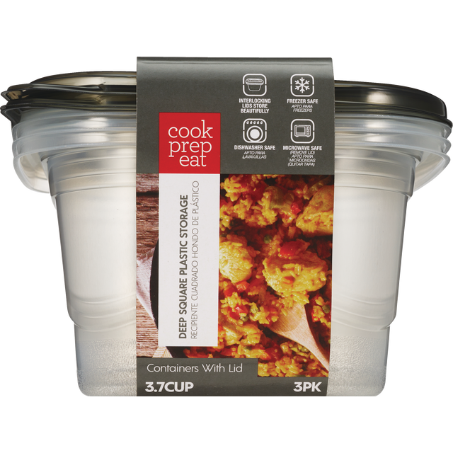 Non Brand Deep Square Plastic Storage, 3.7C, 3Pk