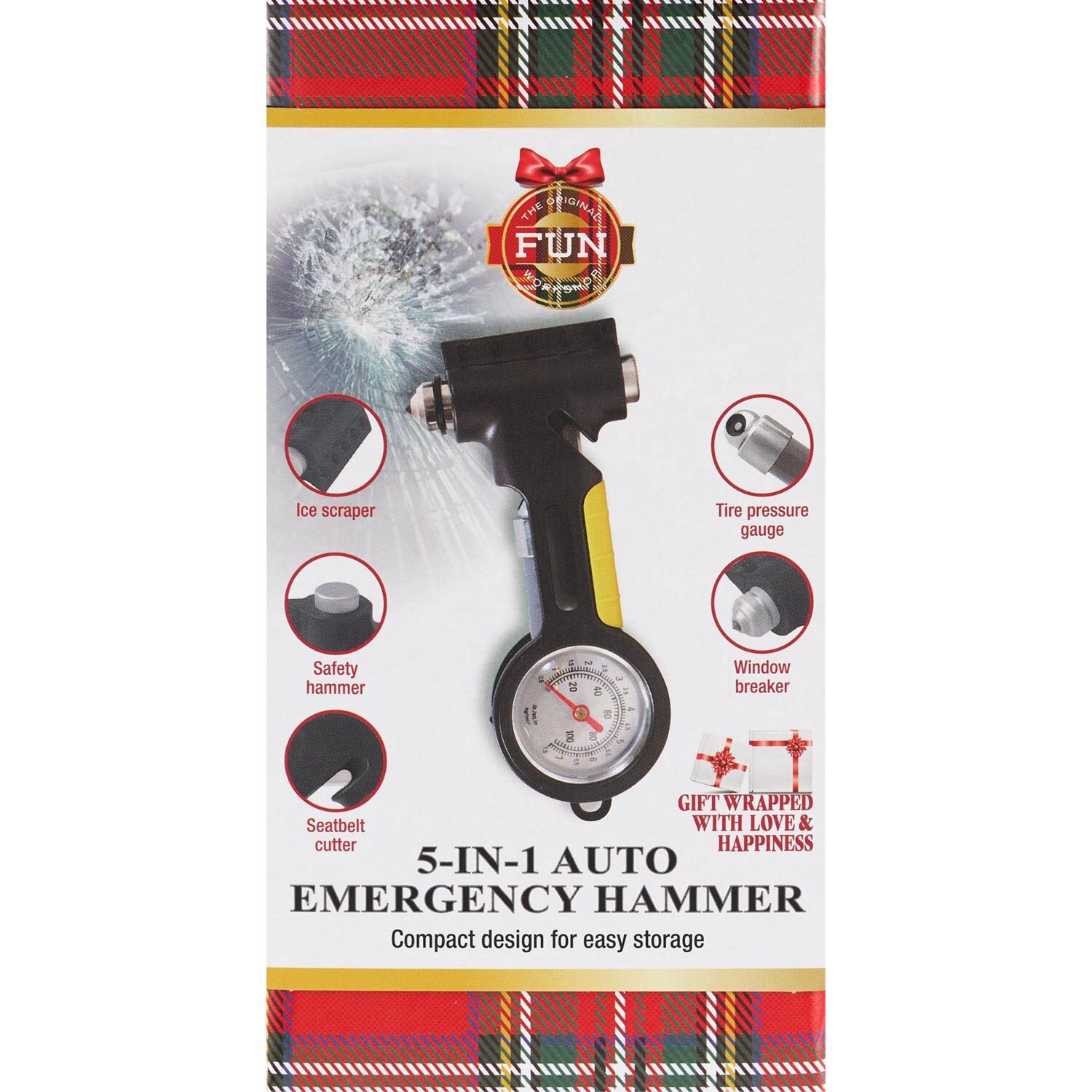 Enjoy safety of mind while on the road with this compact multitool hammer designed with five functions for emergencies. From breaking glass to cutting seatbelts, this sturdy hammer offers a reliable w…