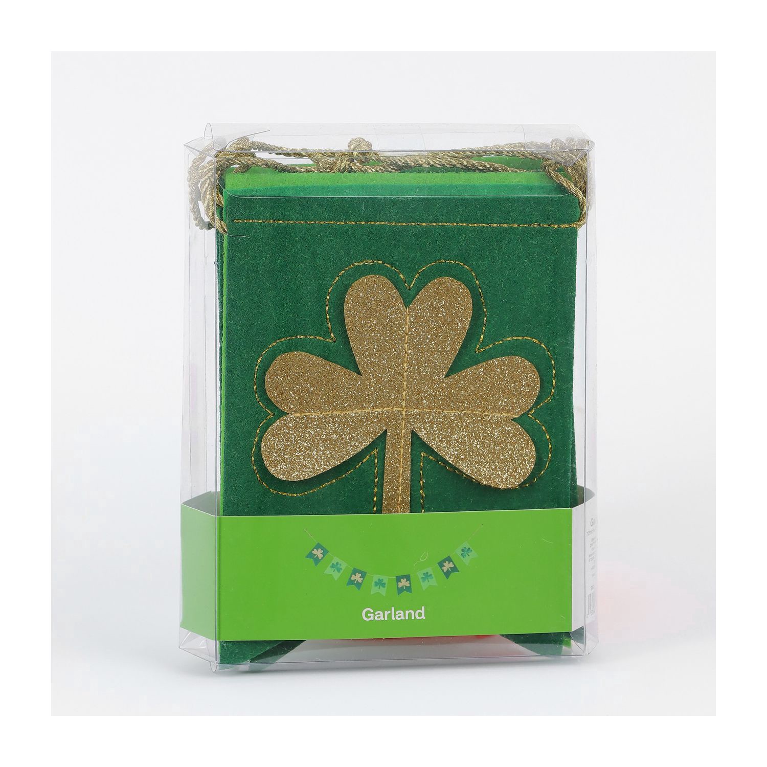 Spread St. Patrick's Day cheer with this beautiful Green felt garland with Glittering Gold & Green clovers.