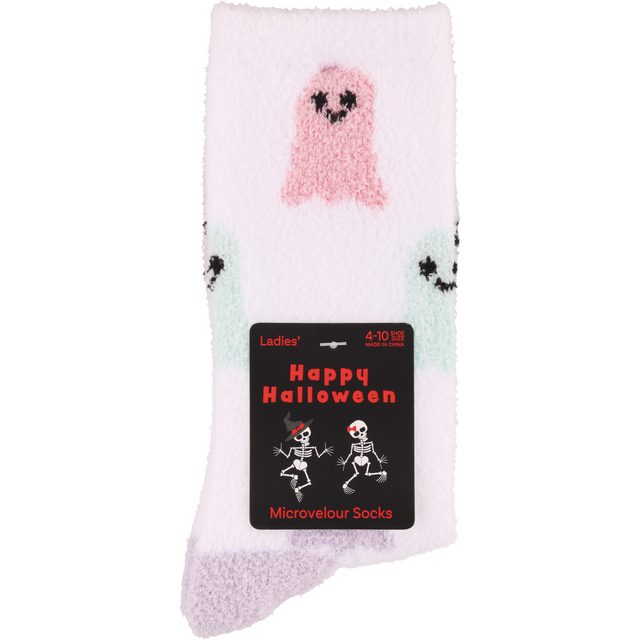NON BRAND Ladies' Crew Sock - Microvelour - Halloween - Pastel Ghosts