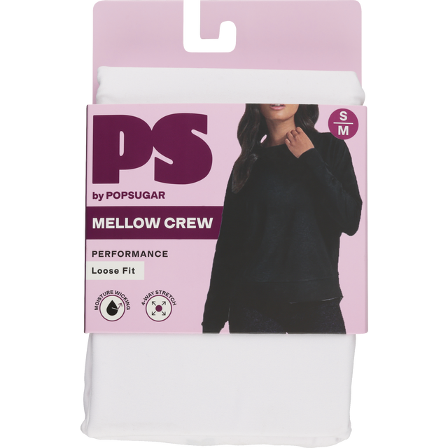 POPSUGAR LADIES CROPPED 4-WAY STRETCH CREW CROPPED LENGTH DROP SHOULDER, LOOSE FIT BANDED CUFF/HEM MOISTURE WICKING