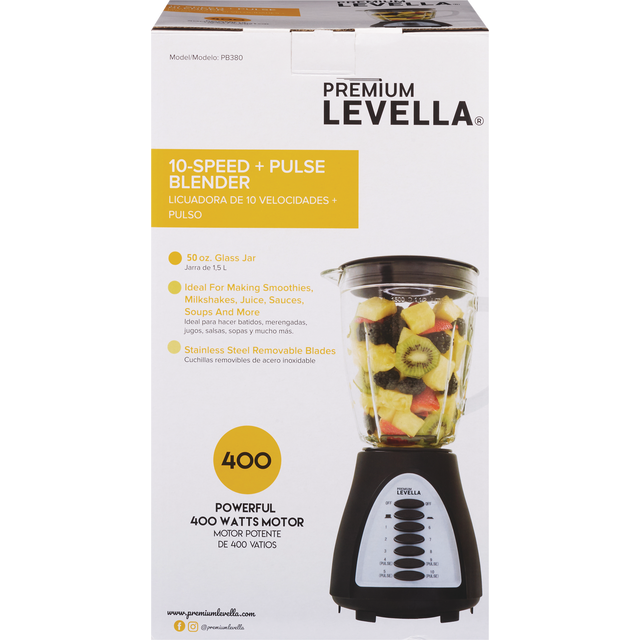 10-Speed + Pulse Blender 34 Oz. Glass Jar 10-Speed control with pulse blending options Ideal for making smoothies, milk shakes, juices, sauces, soups and more