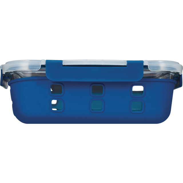 Non Brand Rectangular Glass Storage With Lock Lid And Silicone Wrap, 6.4C