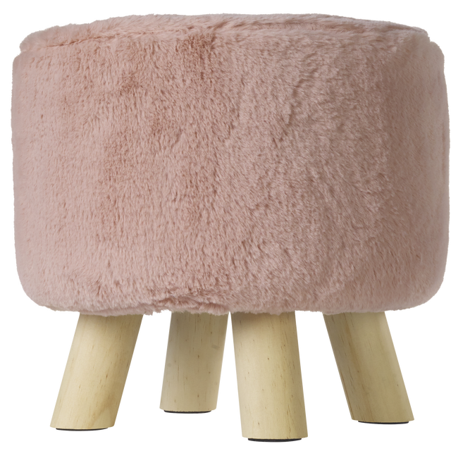 Short Fur Foot Stool Blush