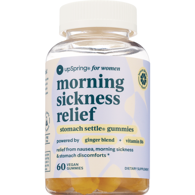 Morning Sickness Gummies: Proprietary Stomach Settle Blend, Organic Ginger Root Extract, Natural Lemon Oil, Natural Spearmint Oil, Vitamin B6 (as pyrodoxine hcl), Other ingredients: Glucose Syrup, Gra…