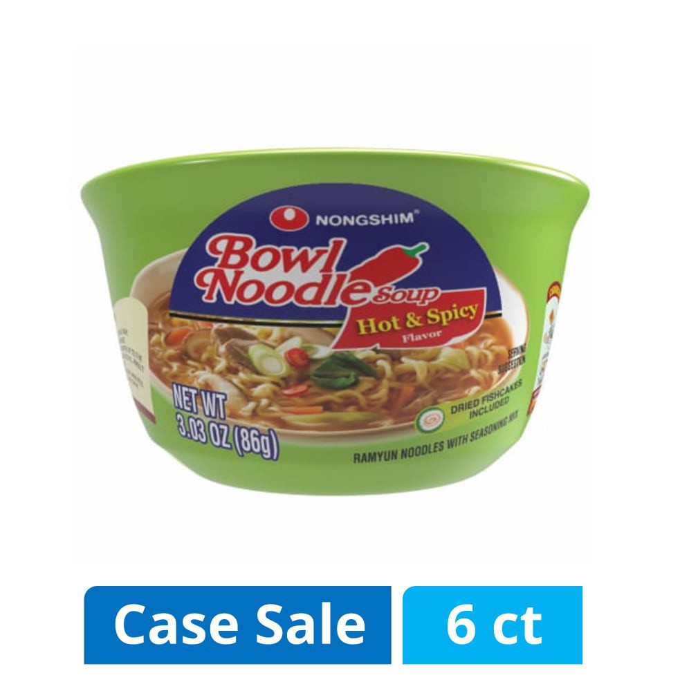 slide 1 of 1, Nongshim® Hot & Spicy Bowl Noodle Soup Case Sale, 3.03 oz / 6 ct