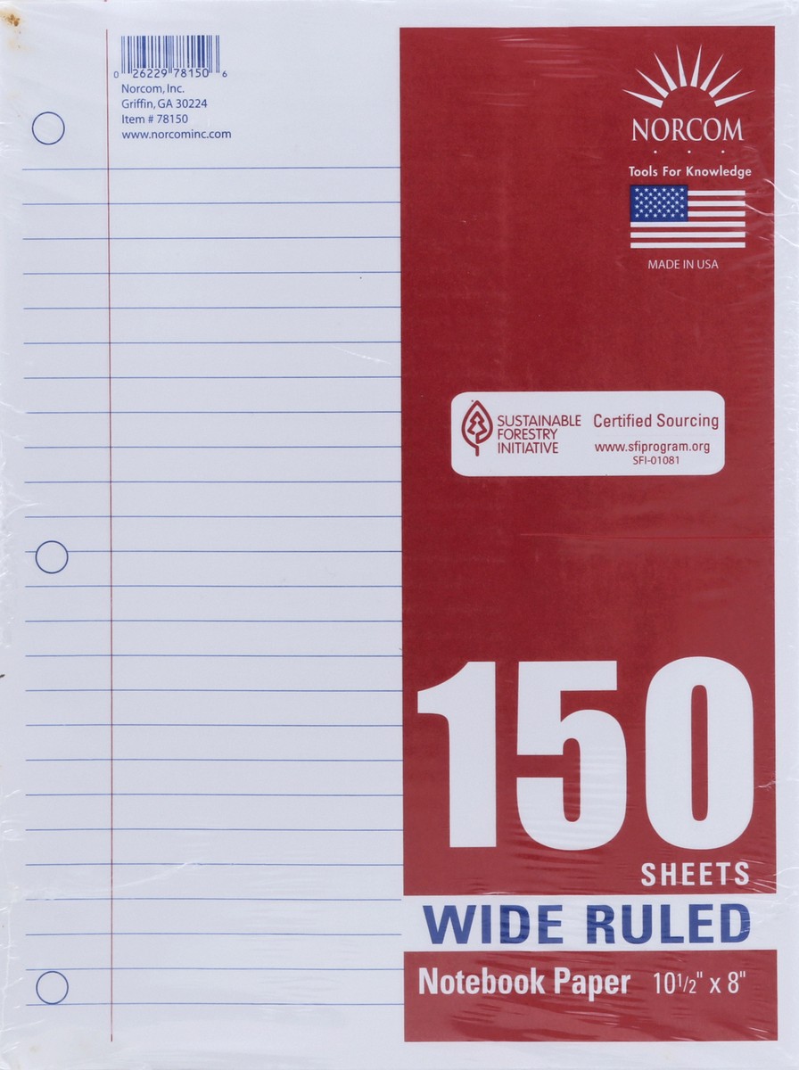 slide 5 of 5, Norcom Wide Ruled Filler Paper,