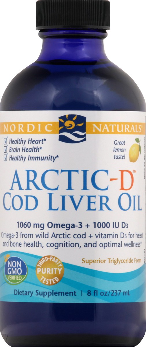 Purified Arctic Cod Liver Oil, Natural Lemon Flavor, D-Alpha Tocopherol, Rosemary Extract (a Natural Preservative), Vitamin D3 (Cholecalciferol in Olive Oil).