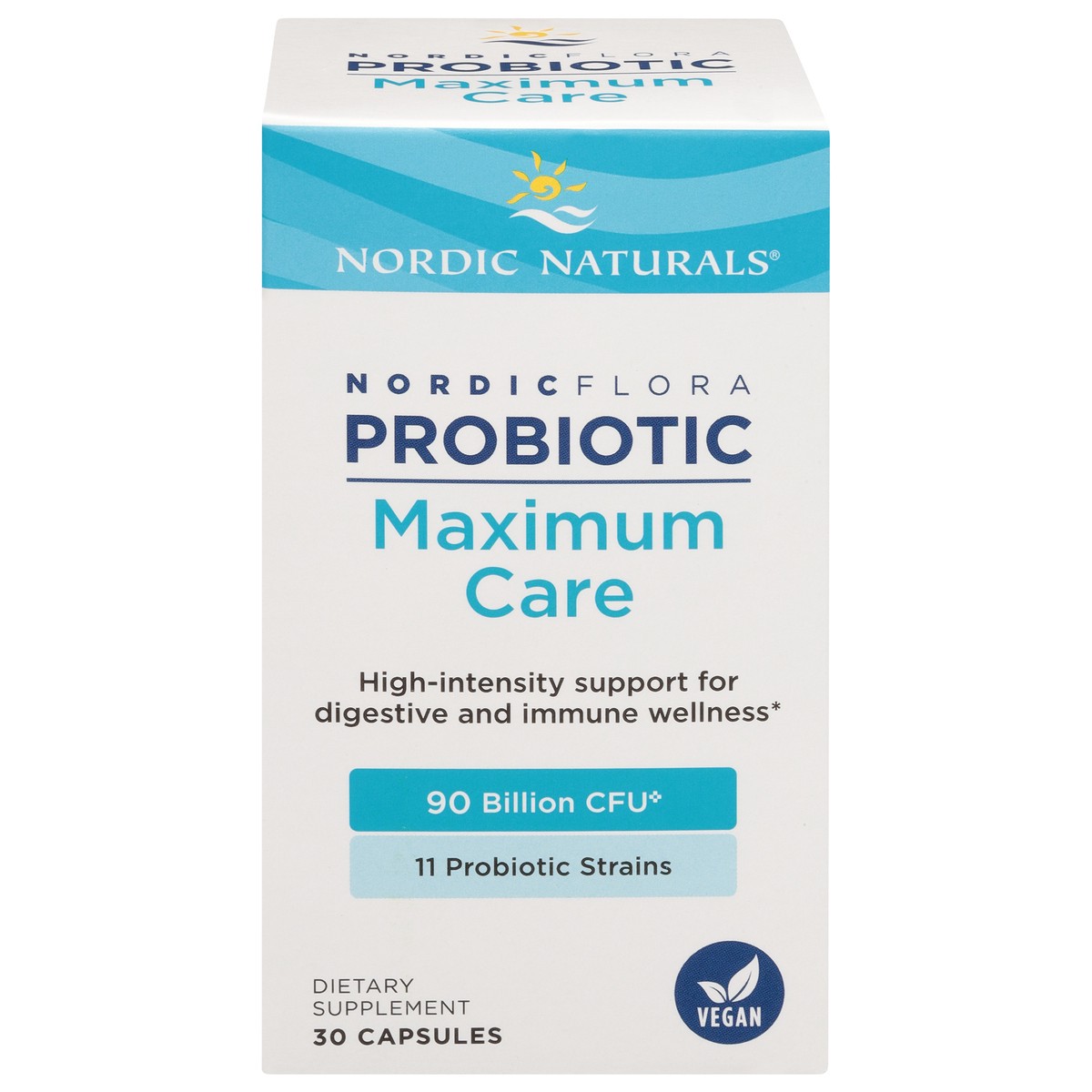 High-intensity support for digestive and immune wellness. 90 Billion CFU (Minimum colony-forming units (CFU) at time of manufacturing). 11 Probiotic strains. Nordic Flora Maximum Care is a blend of el…