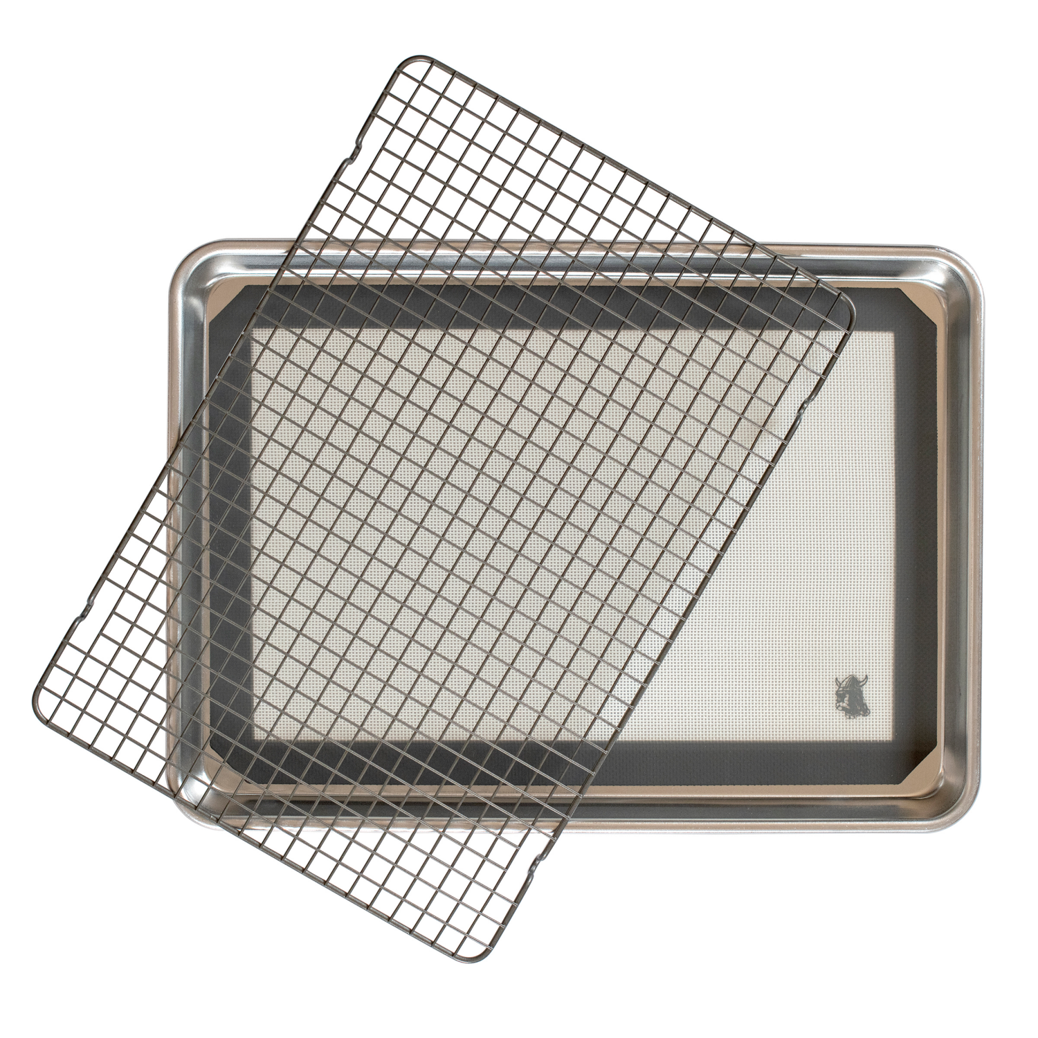 A cookie bakers essential combo: Naturals Half Sheet, a woven fabric Deluxe Silicone nonstick mat and a nonstick coated metal Large Cooling Rack. All sized to fit together!