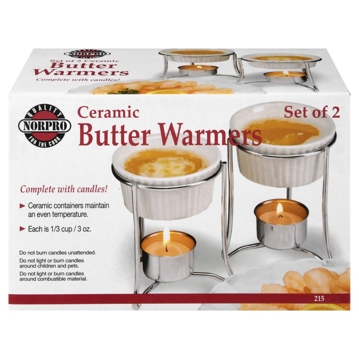 Each is 1/3 cup / 3 oz. Quality for the cook. Complete with candles! Ceramic containers maintain an even temperature. Made in Taiwan for Norpro.