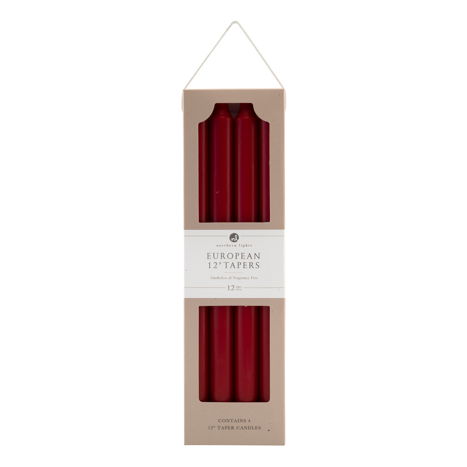 slide 2 of 3, Northern Lights 12" Taper, Crimson 4pk, 4 ct