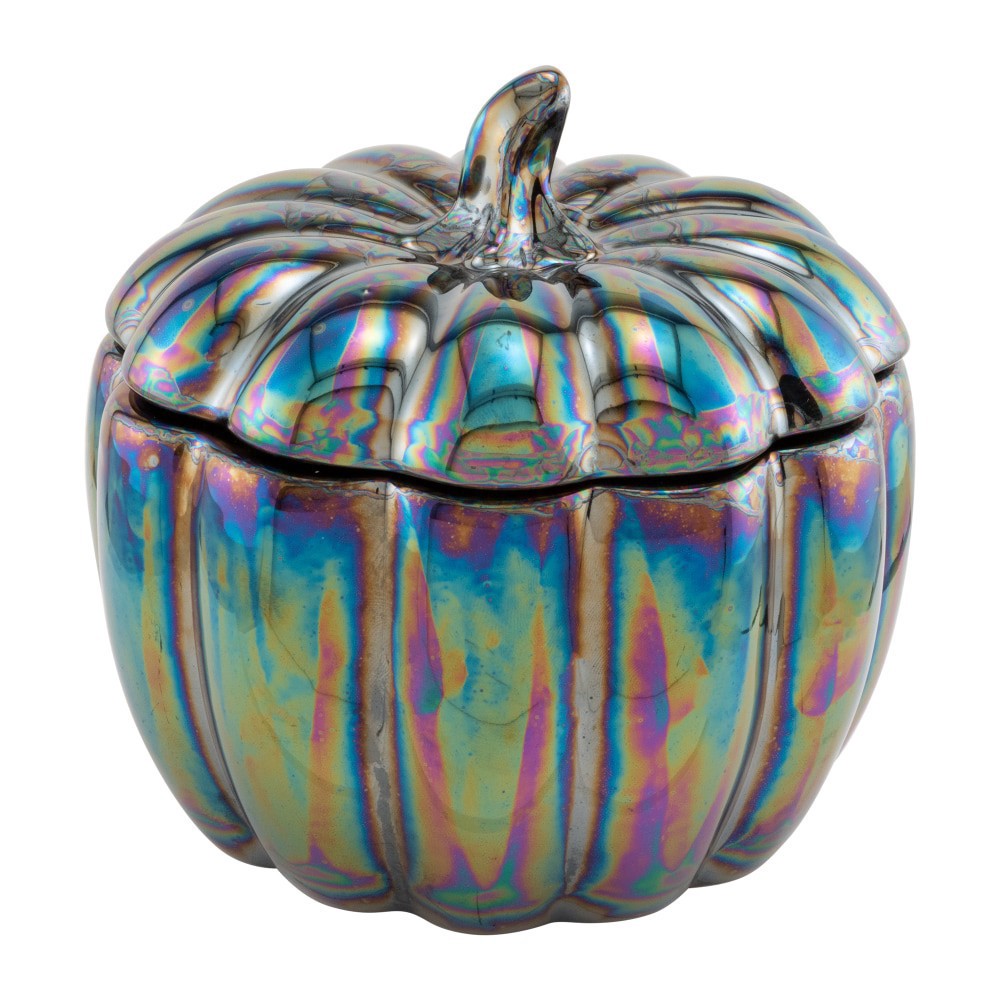 Northern Lights Iridescent Ceramic Pumpkin Candle - Black
