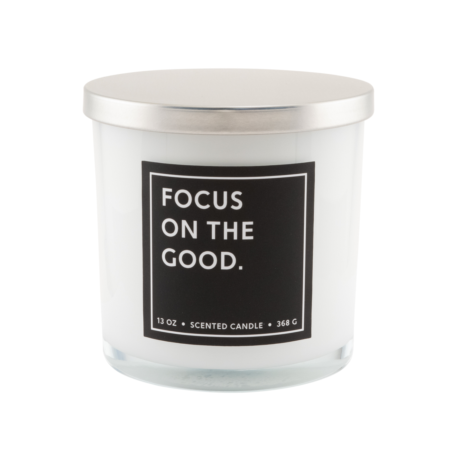 Positivity inspired Focus On The Good Sentiment candle fragranced with notes of coconut, pineapple and lime.