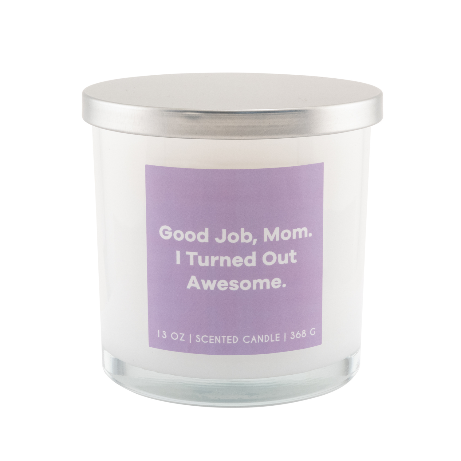 Gifting inspired God Job, Mom. I Turned Out Awesome Sentiment candle fragranced with notes of dahlia, orchid and geranium.