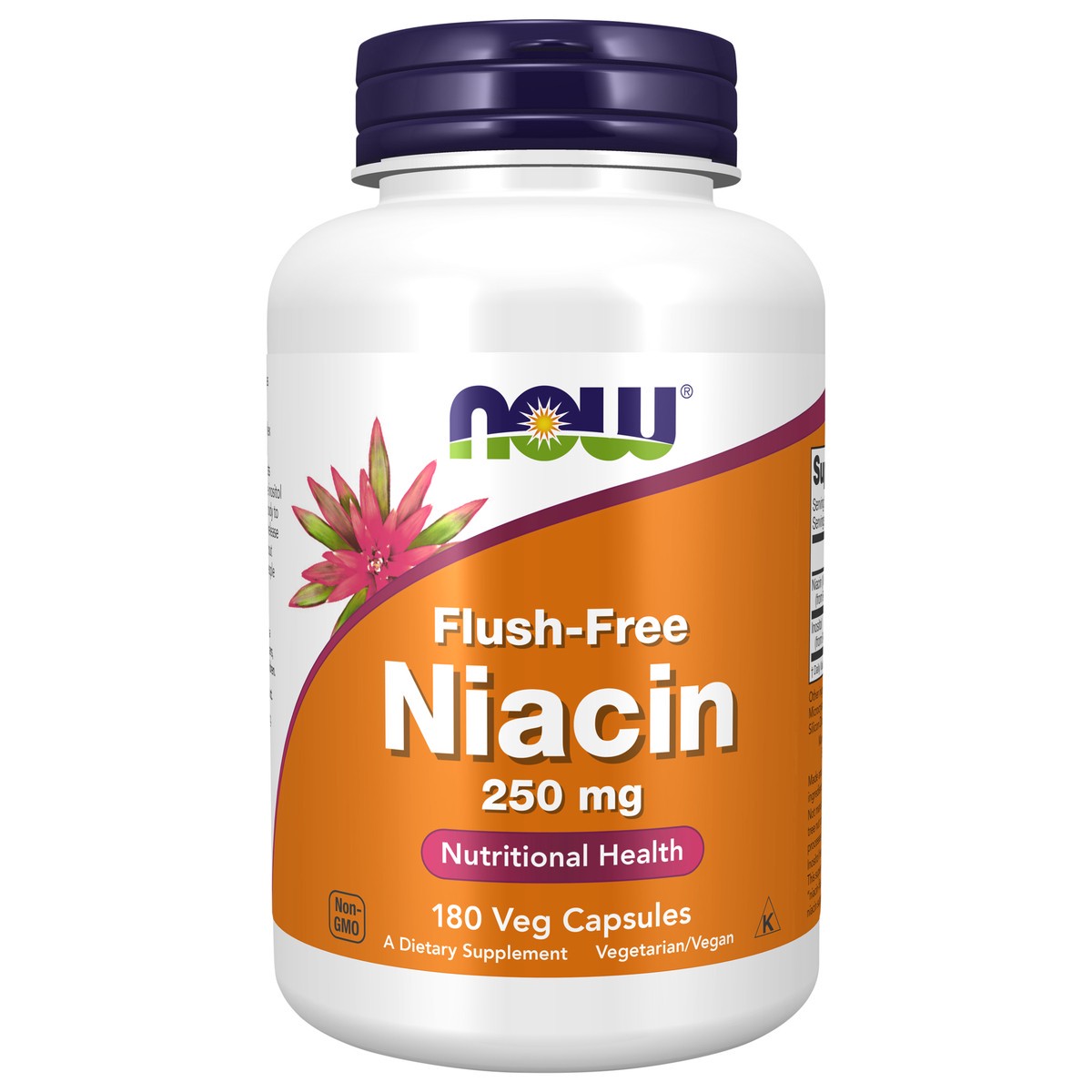 slide 3 of 4, NOW Flush-Free Niacin 250 mg - 180 Veg Capsules, 250 mg