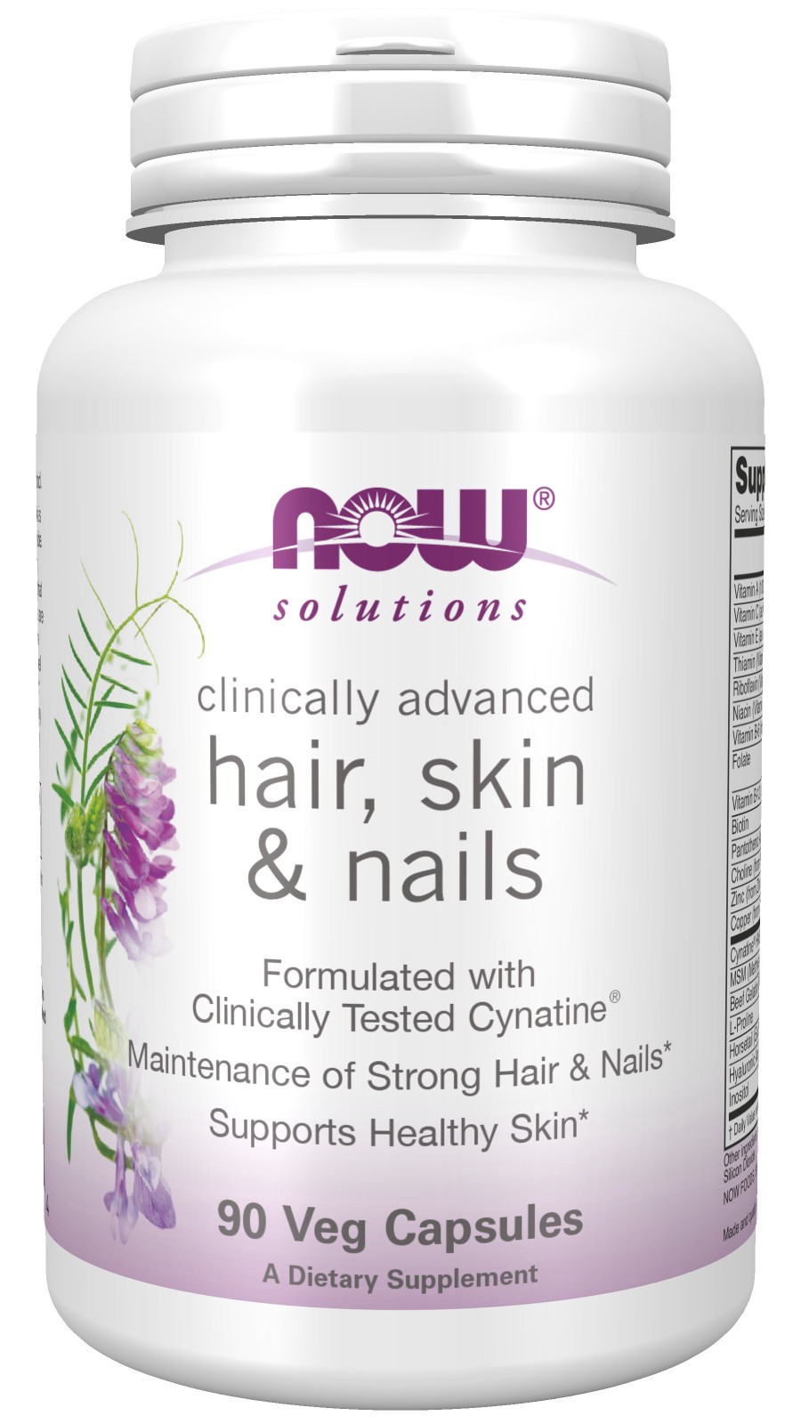 NOW Solutions Clinically Advanced Hair, Skin & Nails is formulated to nurture hair, skin, and nails from the inside. This product features Cynatine HNS, a revolutionary patented and bioavailable form …