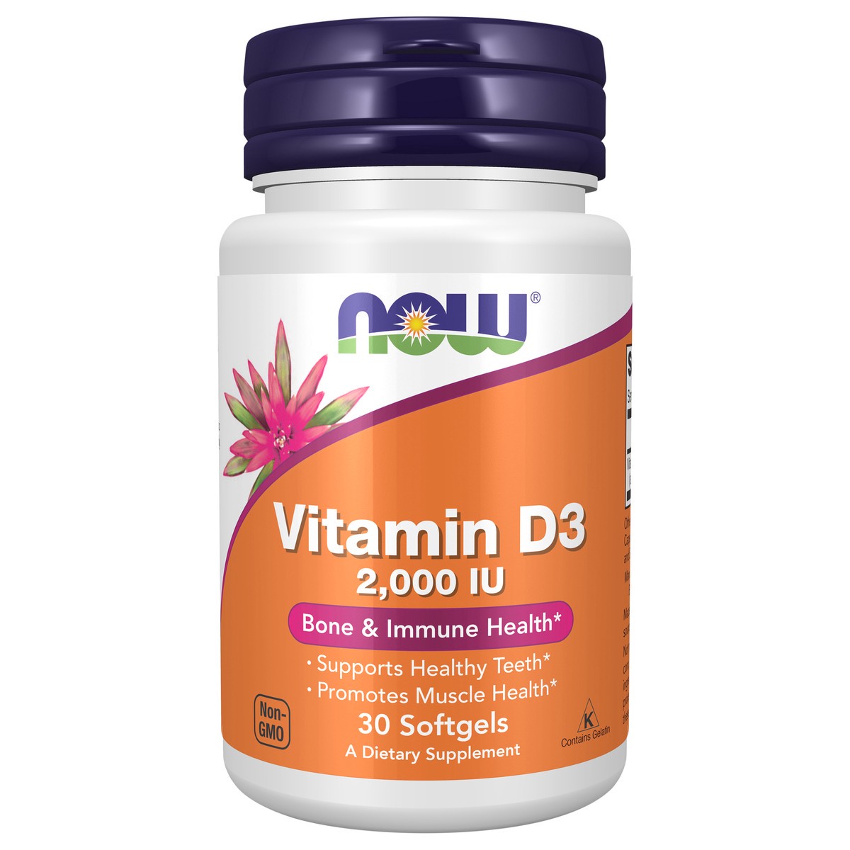 slide 3 of 4, NOW Vitamin D-3 2000 IU - 30 Softgels, 30 ct